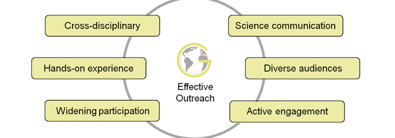 The GeoSciences Outreach course is a 4th year course, now run in conjunction with the School of Psychology, where students work with local community partners including schools and other public and community groups to deliver resources linked to the student’s area of study. One of the key aims of the course is to provide students with an opportunity to put their learning and knowledge into practice while building links with the local community Alongside this the students gain valuable experience with science communication and working with different groups, alongside a range of other skills that are useful beyond their degrees.